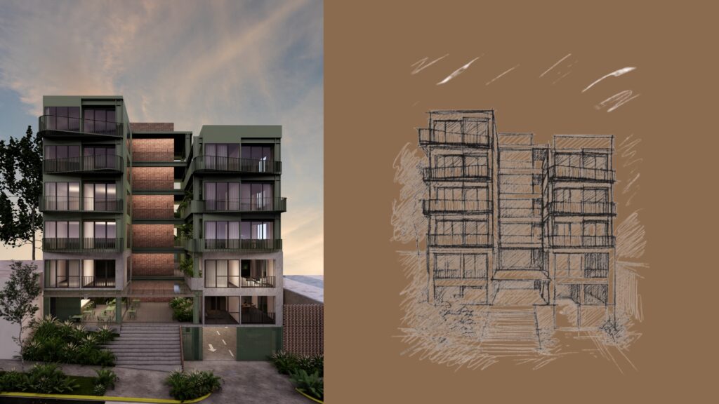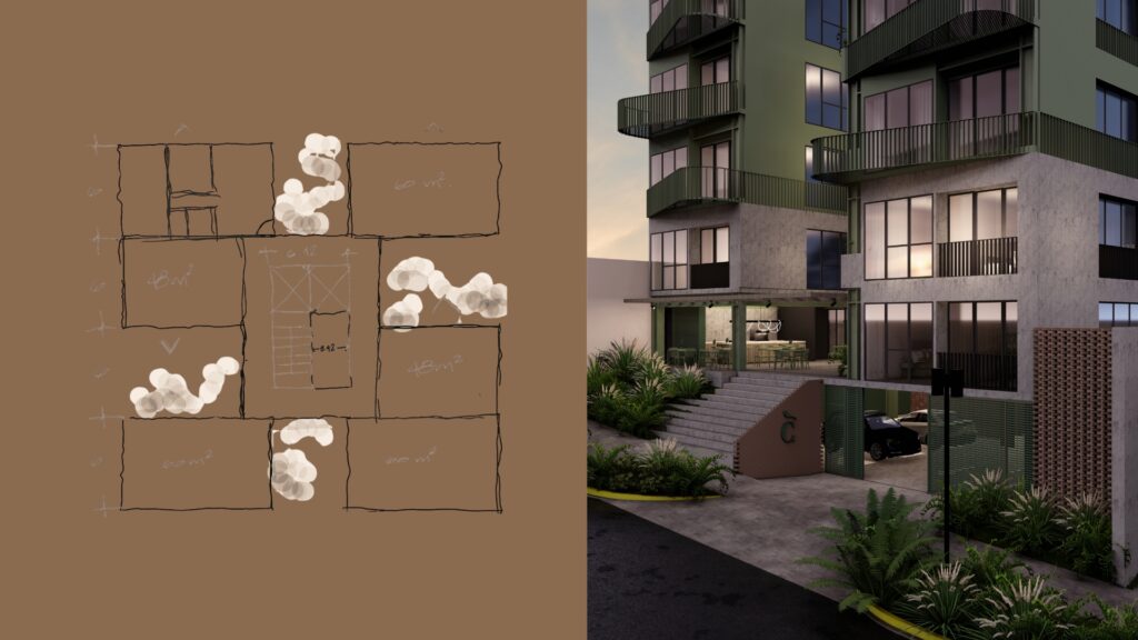 Colibrí es un proyecto de vivienda de 6 niveles &17 Apartamentos diferenciadores en El Salvador. Un nido urbano que busca privacidad sin aislamiento: una arquitectura ligera que respira, flota y se conecta, combinando eficiencia espacial con sensibilidad natural para crear comunidad.