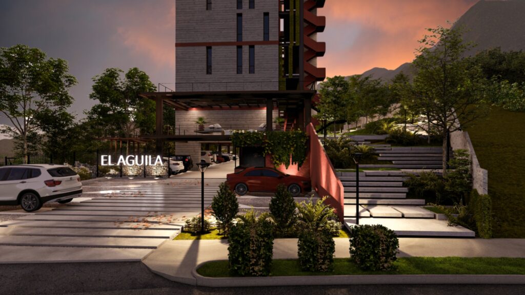 El Águila, proyecto de Vivienda en Altura, que combina apartamentos tipo duplex y apartamentos de 2 habitaciones. Múltiples amenidades como plaza jardín, áreas sociales y pérgolas, juegos y huerto comunal. Este proyecto se posa en el paisaje como un refugio vertical que dialoga con la naturaleza. Su diseño ligero y abierto busca integrar la arquitectura con el entorno, ofreciendo privacidad sin desconexión y generando espacios que respiran y se vinculan con el exterior.