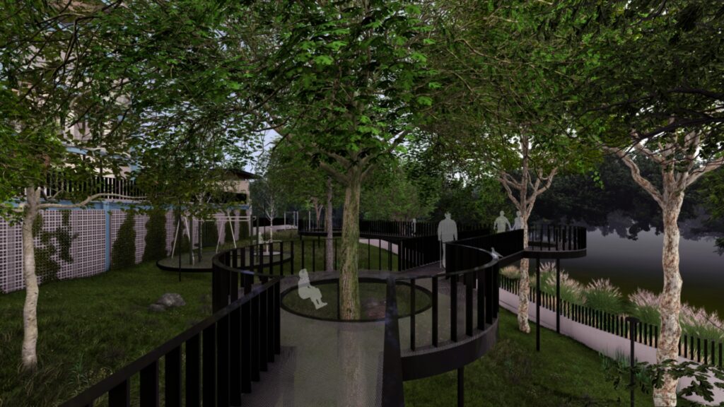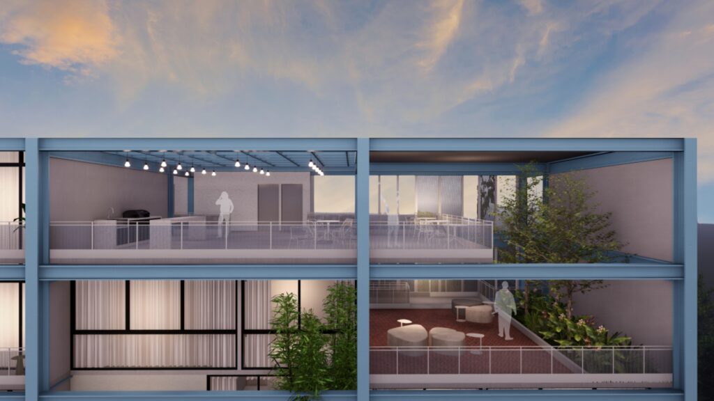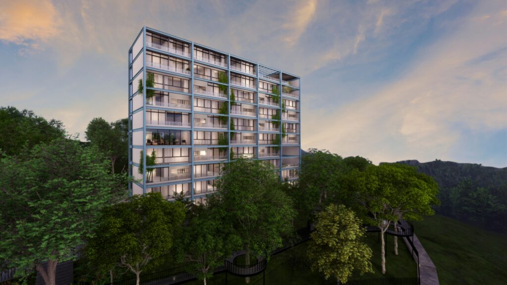 El diseño de Apartamentos busca minimizar su impacto en el entorno natural, adoptando una forma sutil y colores que dialogan con el verdor del paisaje. Más que imponerse sobre la naturaleza, el proyecto se adapta a ella. Sus estructuras suspendidas y fachadas abiertas fomentan una relación cercana entre los usuarios y el medio ambiente, permitiendo que la naturaleza se perciba y se viva desde cada espacio.